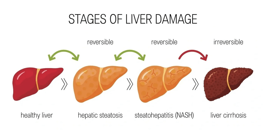 There are more than 100 types of liver diseases, some of which start with cold-like symptoms and then develop into more serious symptoms such as jaundice or dark urine.
