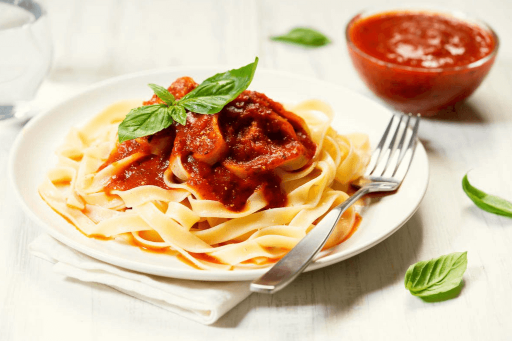 Nothing says comfort more than a heaped plate of pasta in a meaty red sauce. This recipe uses red bell peppers packed with vitamin C, and is a more heart-healthy alternative to red meat.